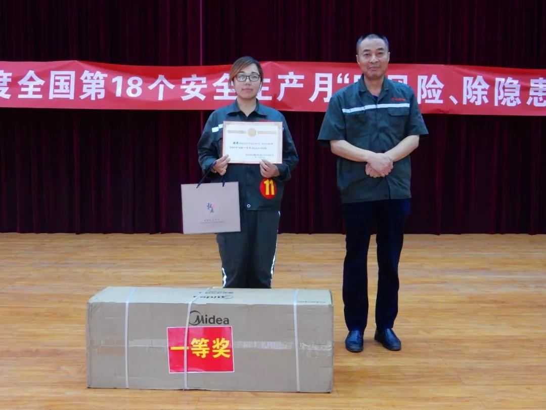 二等獎(jiǎng)兩名,由生產(chǎn)部王部長(zhǎng)為來(lái)自機(jī)動(dòng)部的獲獎(jiǎng)選手封曉琴和來(lái)自煉鋼廠的獲獎(jiǎng)選手候?qū)殢?qiáng)分別頒發(fā)榮譽(yù)證書及獎(jiǎng)品,并合照留念。