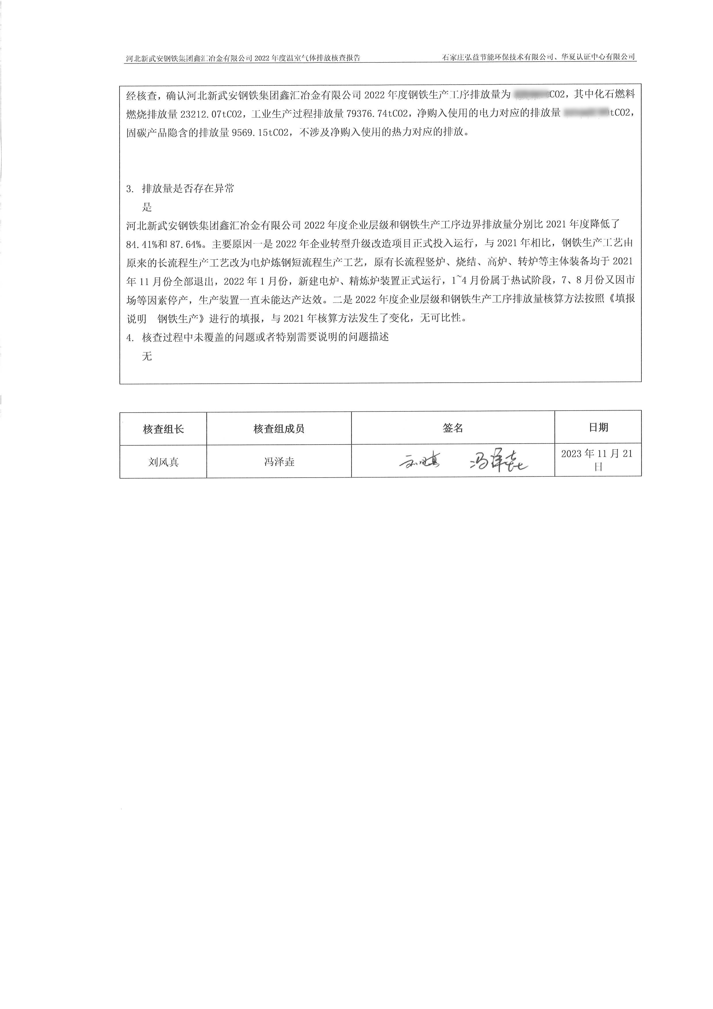 2021年河北新武安鋼鐵集團(tuán)鑫匯冶金有限公司碳排放核查報告
